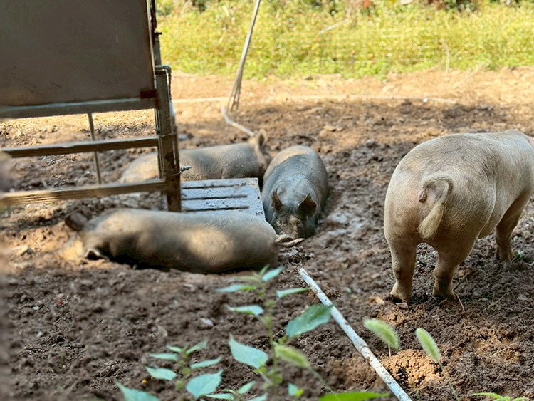 耕作放棄地を活用し、豚たちが自由に動き回れる放牧スタイルを採用。